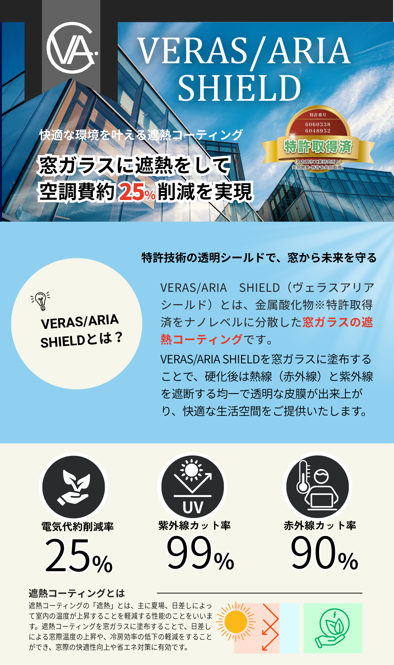 特許技術の透明シールドで窓ガラスに遮熱。