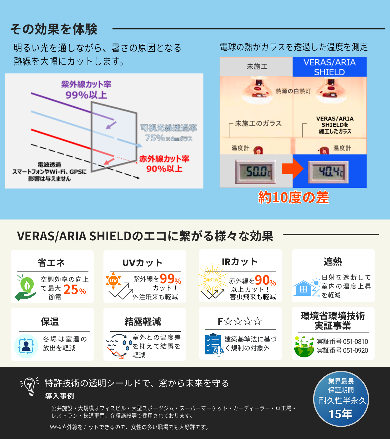 空調費約25%削減、紫外線99%カット、赤外線90%カットを実現